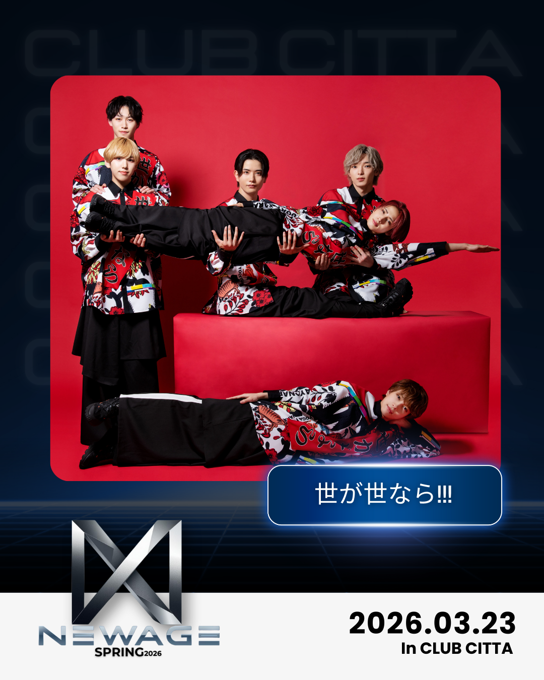 3月23日(月)CLUB CITTA’にて開催される「NEWAGE 2026 SPRING」に世が世なら!!!の出演が決定いたしました。